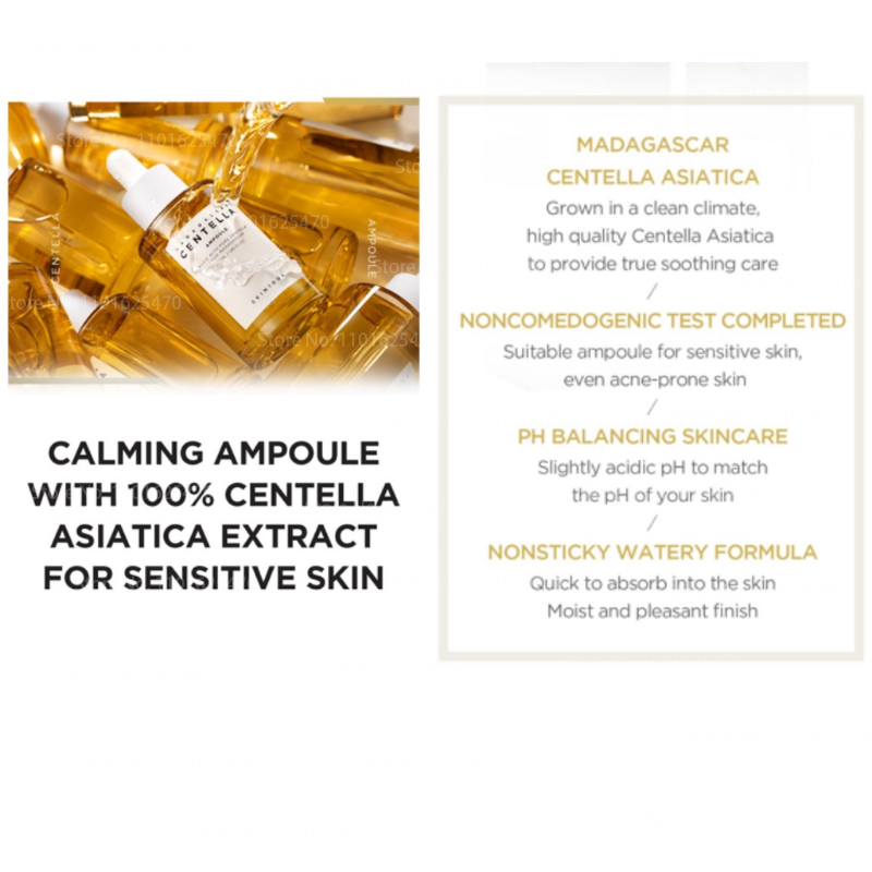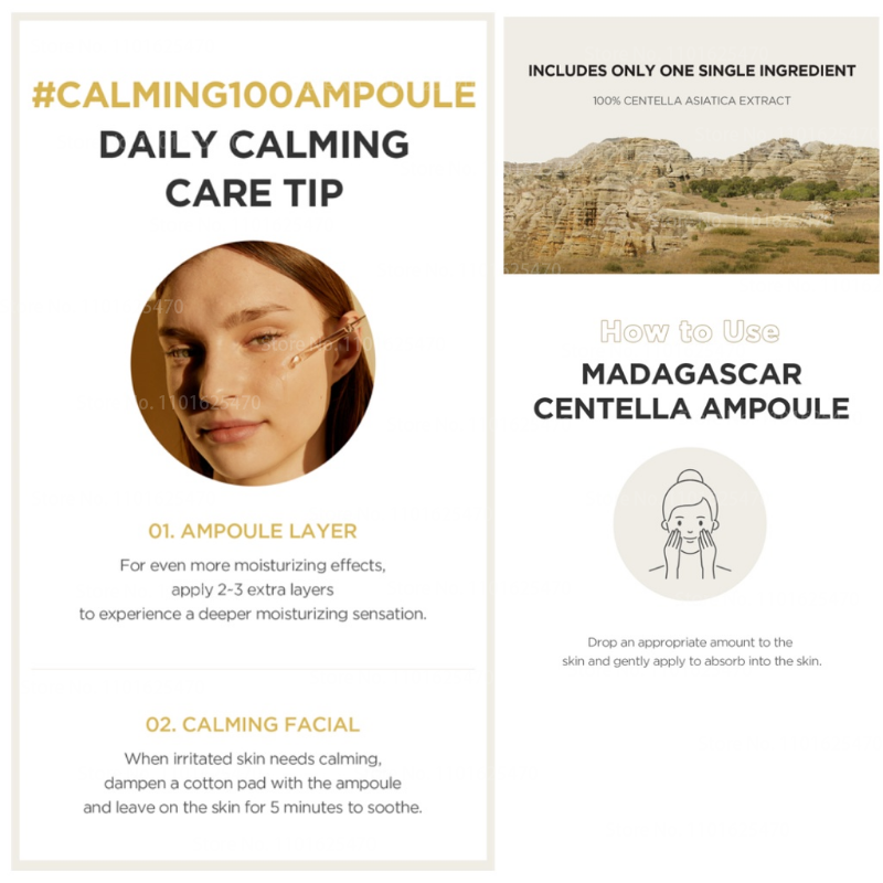 Centella Asiatica Extract Product is SKIN1004's Best Seller „Calming Ampoule‟- a bottle filled with Madagascar‟s unsullied Centella Asiatica Product Characteristics Instantly soothes sensitive skin and provides ample hydration to damaged skin for a dewy looking skin How to Use After cleansing, apply to face and let it absorb into skin. Proceed with lotion and cream after;